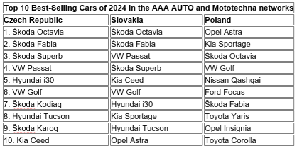 The best-selling brand in the Czech AAA AUTO network is Škoda, with a 30% market share, which improved year-on-year in 2024 due to the popularity of its models. For three consecutive years, the top three best-selling cars have been Škoda models: Octavia (10.3%), Fabia (6.4%), and Superb (3.4%). For the second year, five out of the top ten best-selling cars belong to Škoda. The fifth position is held by Hyundai i30 (2.3%), pushing Volkswagen Golf out of the top five, with Volkswagen Passat in sixth (2.7%). Czechs have long preferred group vehicles, viewing them as reliable and more accessible due to an extensive service network. In Slovakia, Škoda also maintains its lead with models Octavia (9.5%) and Fabia (5.2%). In Poland, the traditional favorite is Opel with the Astra (4.5%), but Škoda is also gaining ground with the Octavia.