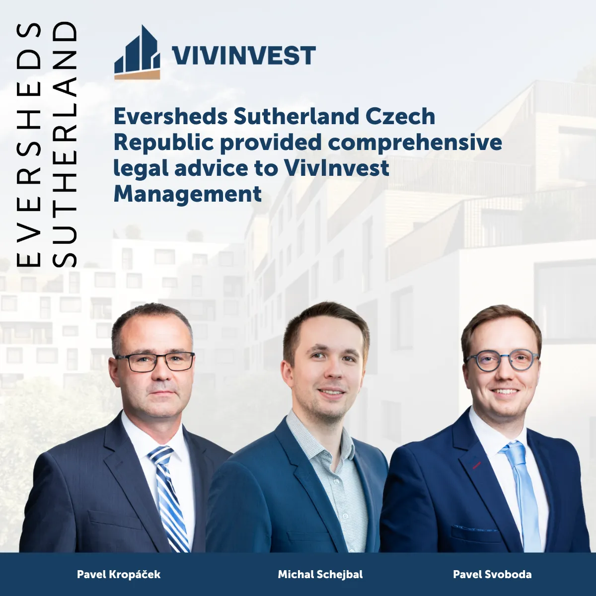 Eversheds Sutherland Czech Republic provided comprehensive legal advice to VivInvest Management, a Czech investment company active in residential development for over 12 years, in connection with the acquisition of a development project on the eastern outskirts of Prague, which is planned to include more than 170 residential and non-residential units.